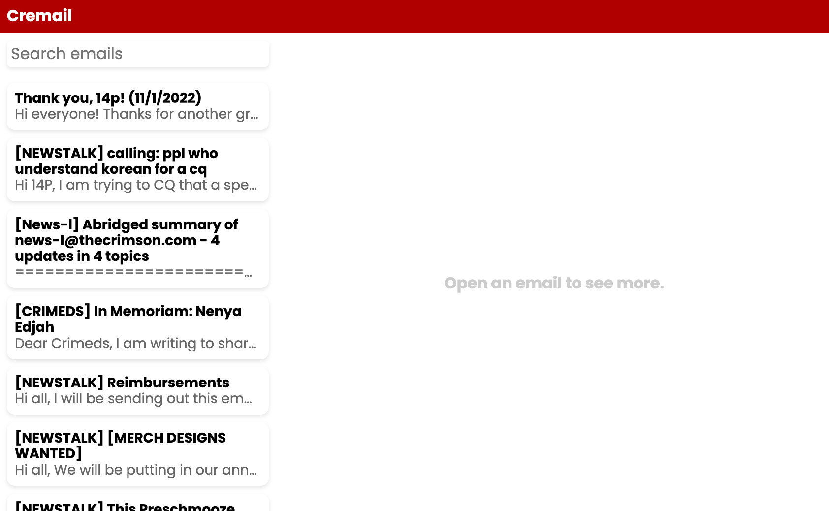 - Look, if you had access to the Crimson's mailing lists, you would probably also want a nice web app that lets you read and search them.