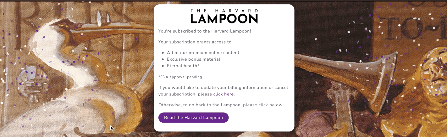 Thank you for your consideration of my packet for the Lampoon Tech Board. I hope that my updates to HarvardLampoon.com, standalone projects, and cybersecurity efforts show my commitment and enthusiasm for the Harvard Lampoon. Please let me know if you have any questions about my submission, or if you would like me to tell you about the second major vulnerability I found in your website.
