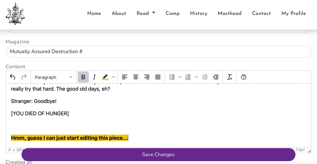 - Found a (totally, 100% intentional, I'm sure) security vulnerability in the production Lampoon site that let unauthenticated users edit any piece, ad, or artwork.